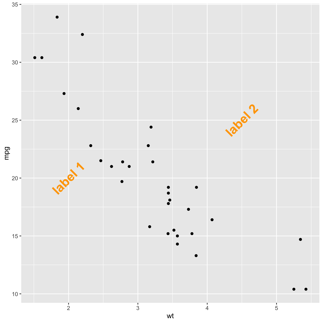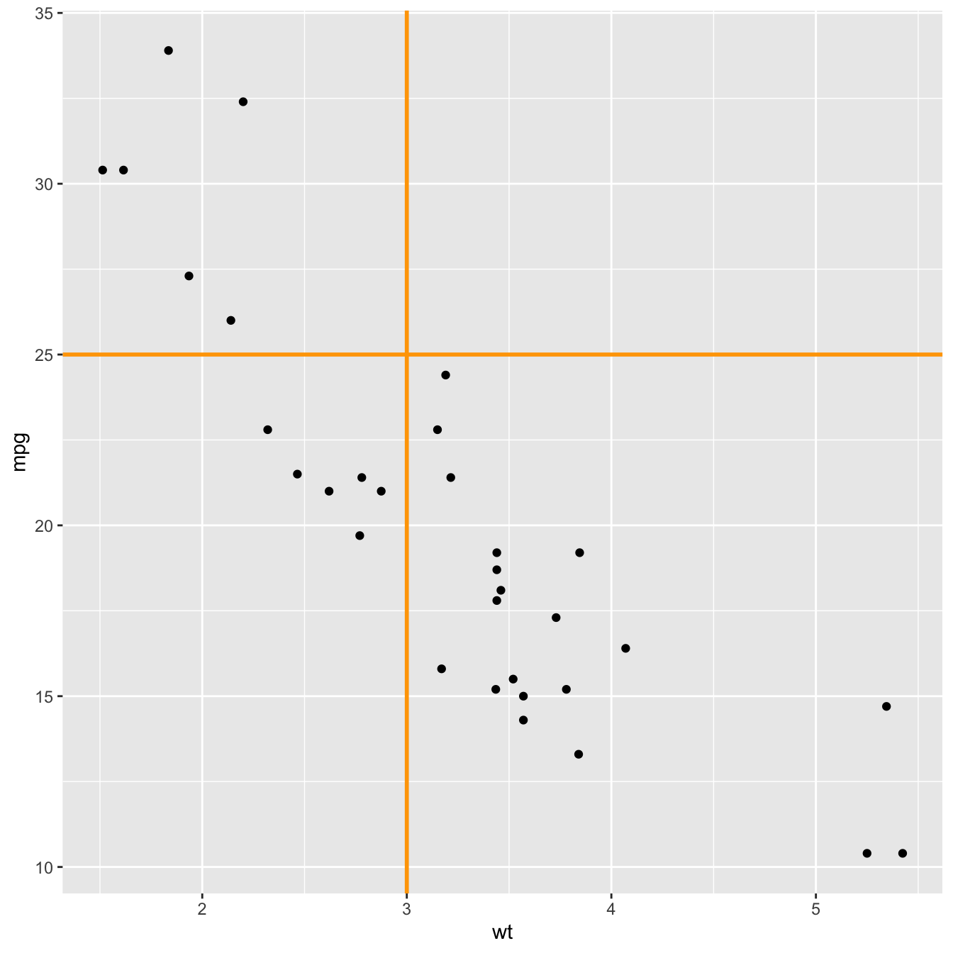 p <- ggplot(mtcars, aes(x = wt, y = mpg)) +